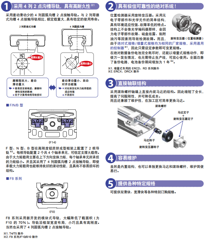 利用高剛性的滾珠絲杠與導(dǎo)軌,位置檢出器采用耐環(huán)境性極高的旋轉(zhuǎn)變壓器,因而它具有產(chǎn)品使用壽命長的特點(diǎn)??捎兄蠓冉档途S護(hù)管理費(fèi)用。