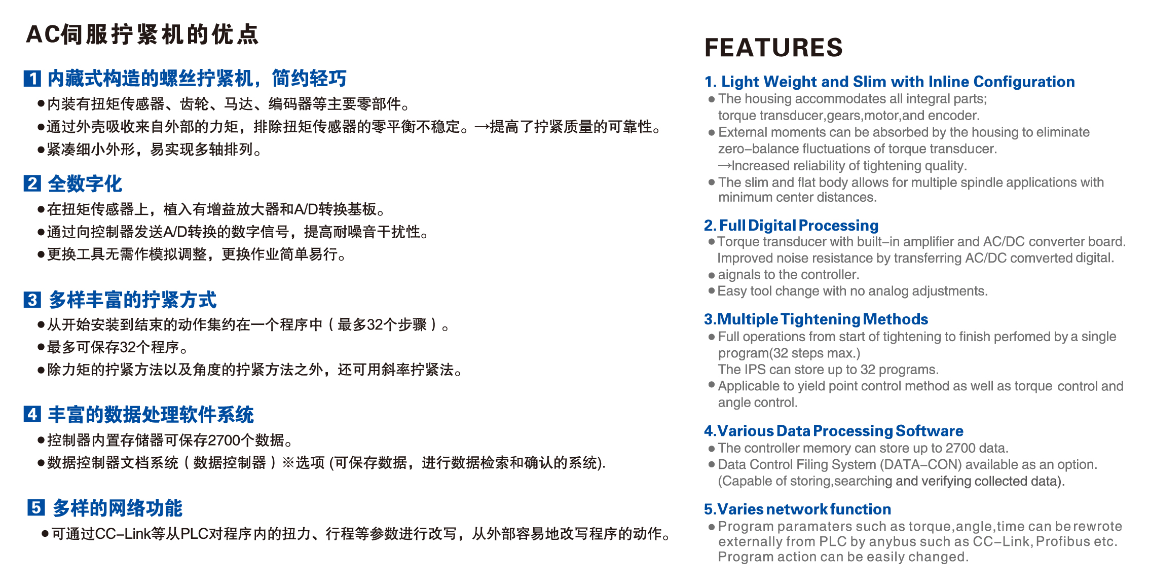 內(nèi)藏式構(gòu)造的螺絲擰緊機,簡約輕巧 全數(shù)字化 多樣豐富的擰緊方式 豐富的數(shù)據(jù)處理軟件系統(tǒng) 多樣的網(wǎng)絡(luò)功能