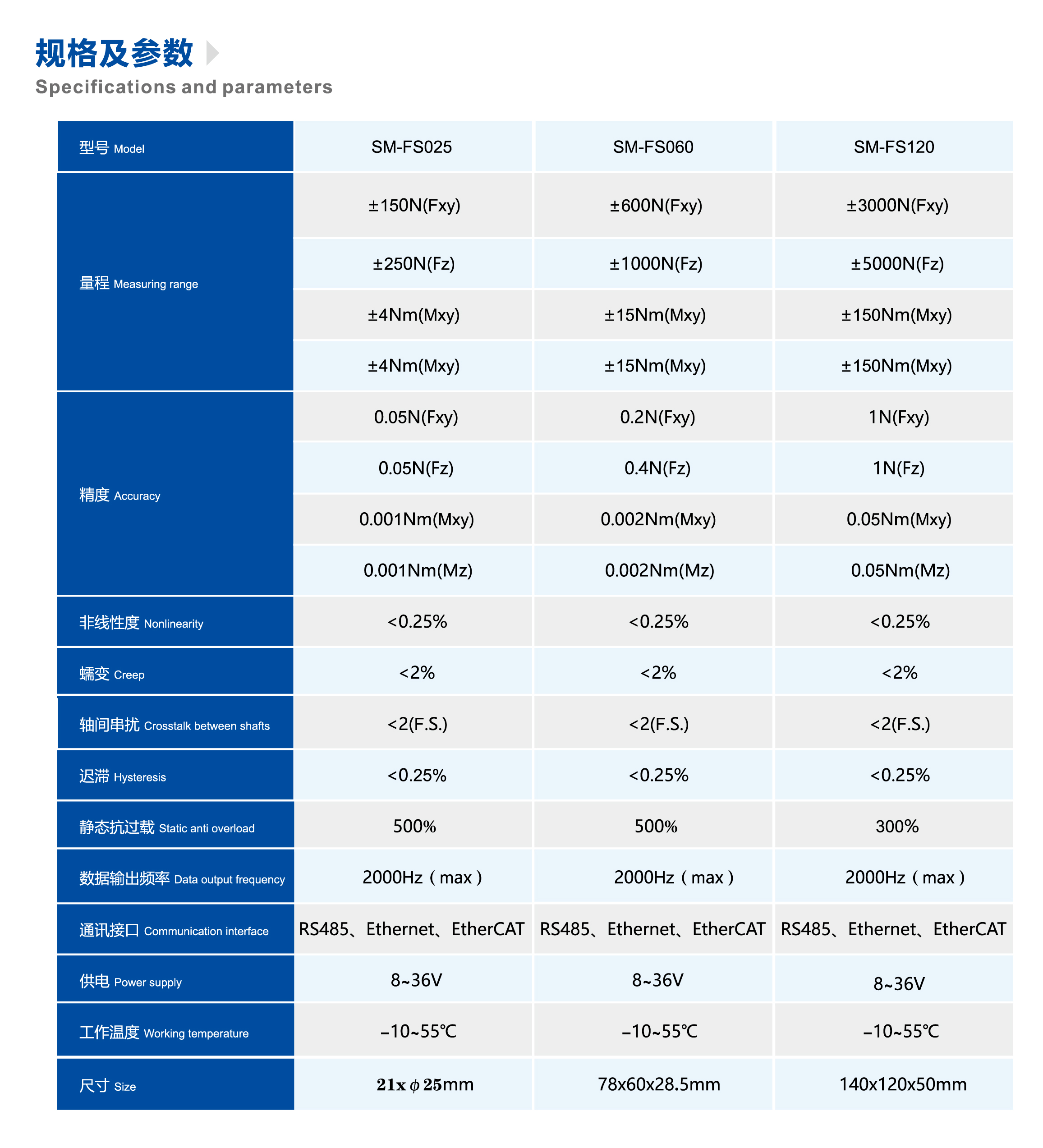 ?控傳感器可實時測量XYZ三個?向所受到的力和力矩。高精度應(yīng)變計及結(jié)構(gòu)設(shè)計實現(xiàn)了更高的信噪比和靈敏度,內(nèi)置溫度補(bǔ)償算法大大降低了由溫度變化導(dǎo)致的溫度漂移。六維力傳感器應(yīng)用于工業(yè)機(jī)器人、協(xié)作機(jī)器人、外骨骼機(jī)器?、醫(yī)療康復(fù)機(jī)器人、柔性夾爪和機(jī)器人關(guān)節(jié)、自動化測量、控制及風(fēng)洞測試等。