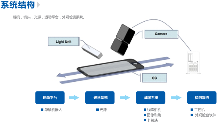 本系統(tǒng)主要用于面板瑕疵檢測。手機屏、平板電腦、顯示器、數(shù)碼相機、智能電視、車載顯示器、打印機顯示器等。