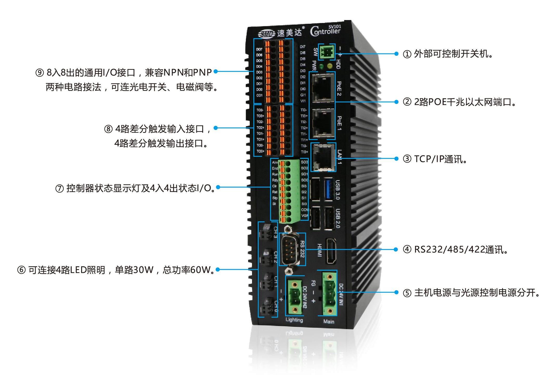 專為機(jī)器視覺(jué)處理而開(kāi)發(fā)的超緊湊型、功能高度集成型的視覺(jué)控制器硬件平臺(tái)。既有傳統(tǒng)PC功能,也包含其他很多實(shí)用的擴(kuò)展功能,特別適合作為各類機(jī)器視覺(jué)類軟件運(yùn)行的硬件載體。