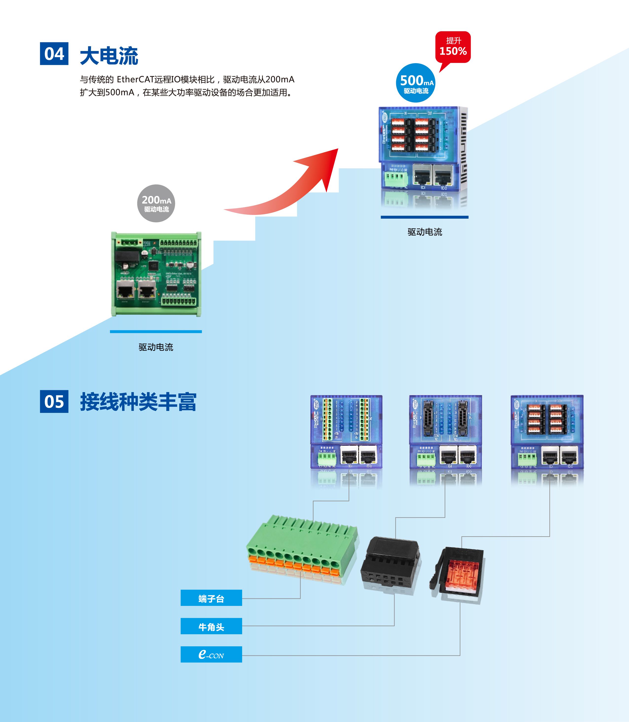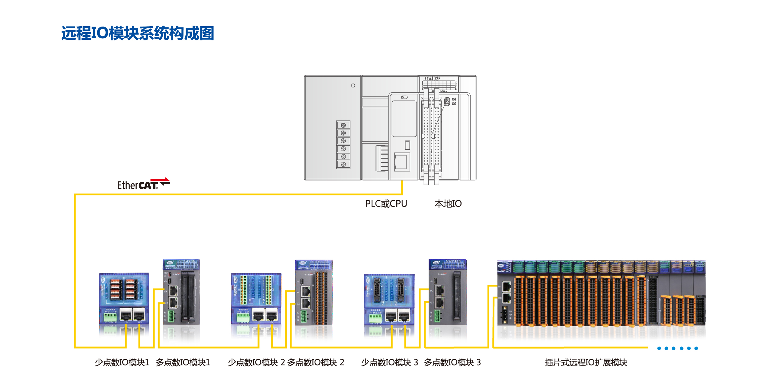 少點(diǎn)數(shù)及多點(diǎn)數(shù)遠(yuǎn)程IO是速美達(dá)自主研發(fā)的一款總線產(chǎn)品。將通訊端口,電源模塊,IO模塊集成在單個(gè)模塊上。其擁有體積小、結(jié)構(gòu)緊湊、 接線簡(jiǎn)單、 接線接口豐富、 性能穩(wěn)定、 可靠等特點(diǎn)。目前支持EtherCAT 總線,后續(xù)會(huì)增加CC-LINK,PROFINET等總線接口。有多種型號(hào)類型以及輸入輸出點(diǎn)可供選擇,單個(gè)模塊最大可支持48個(gè)信號(hào)點(diǎn)。