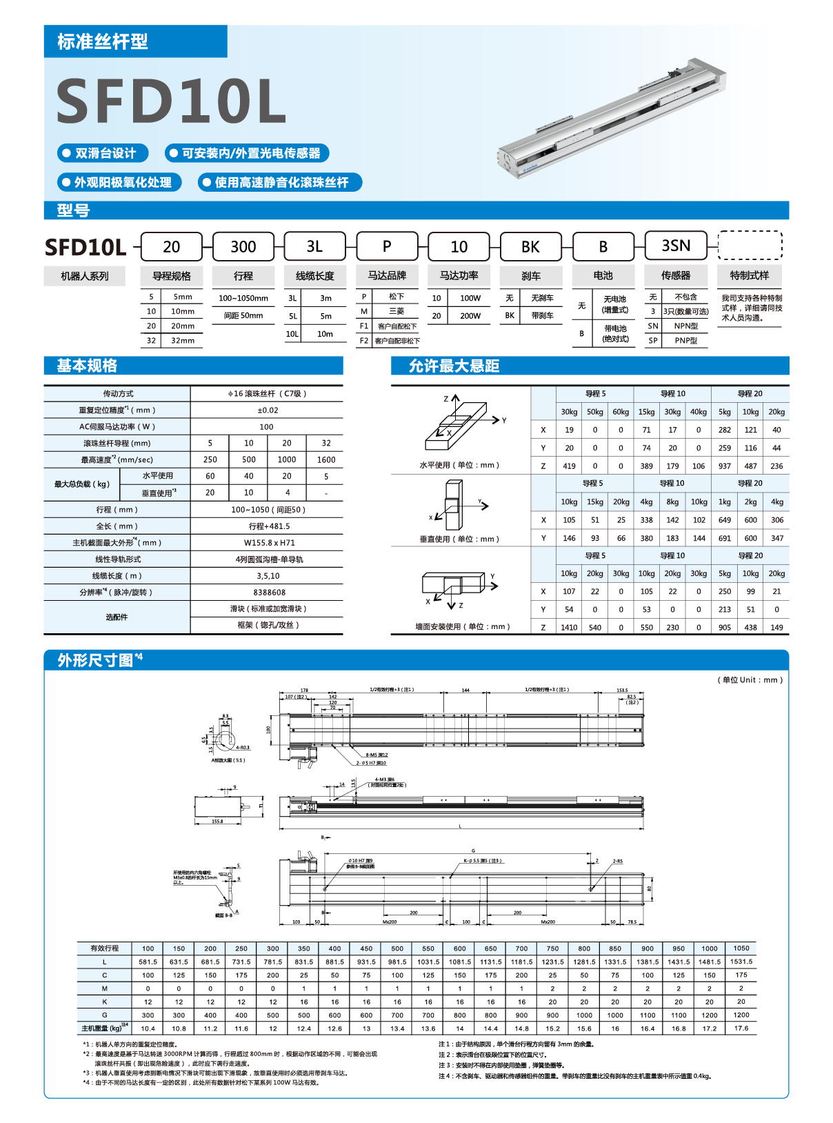 盛為興單軸模組——標準絲桿型 雙滑臺設計 可安裝外置光電傳感器 外觀陽極氧化處理 使用高速靜音化滾珠絲桿