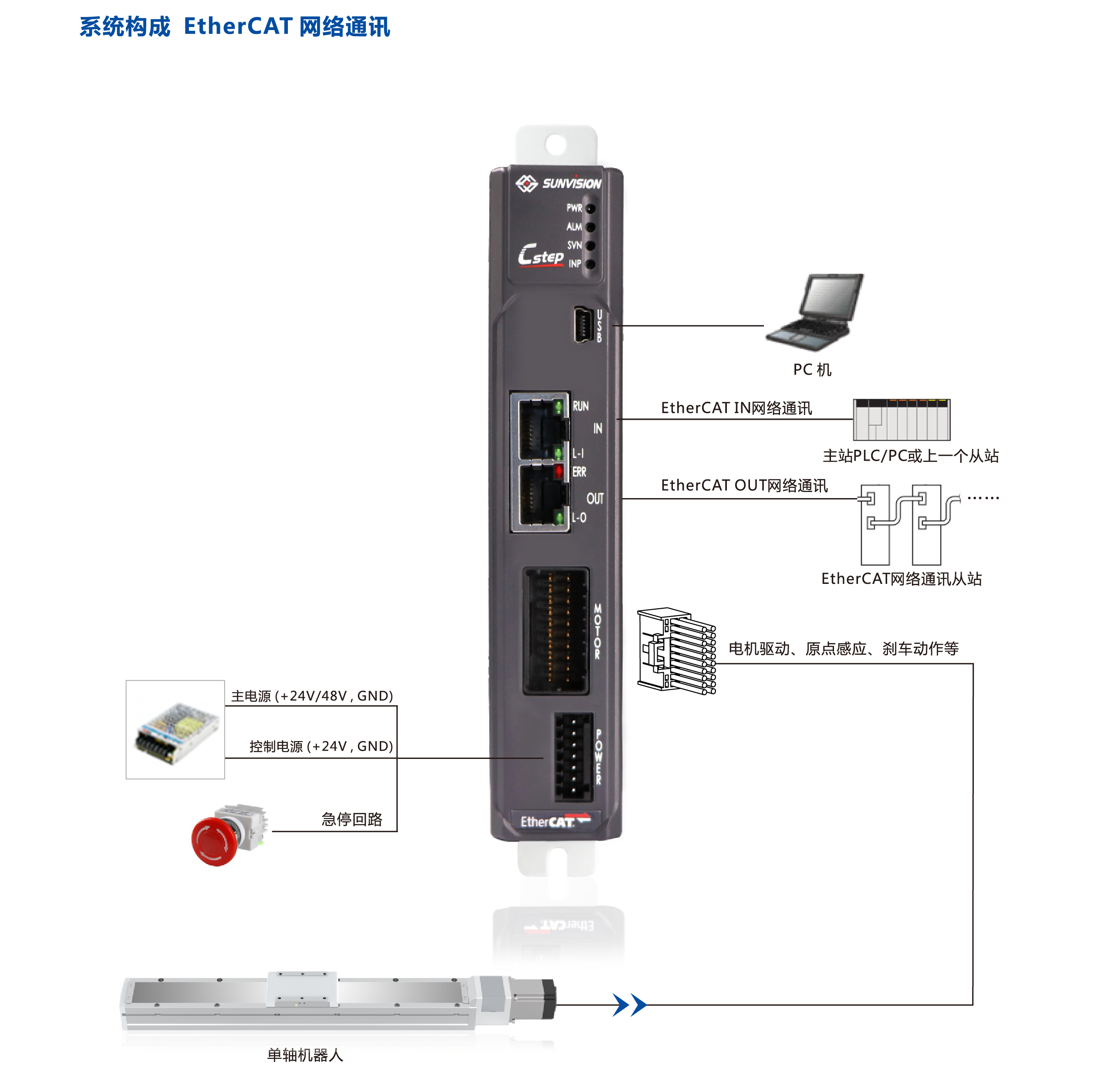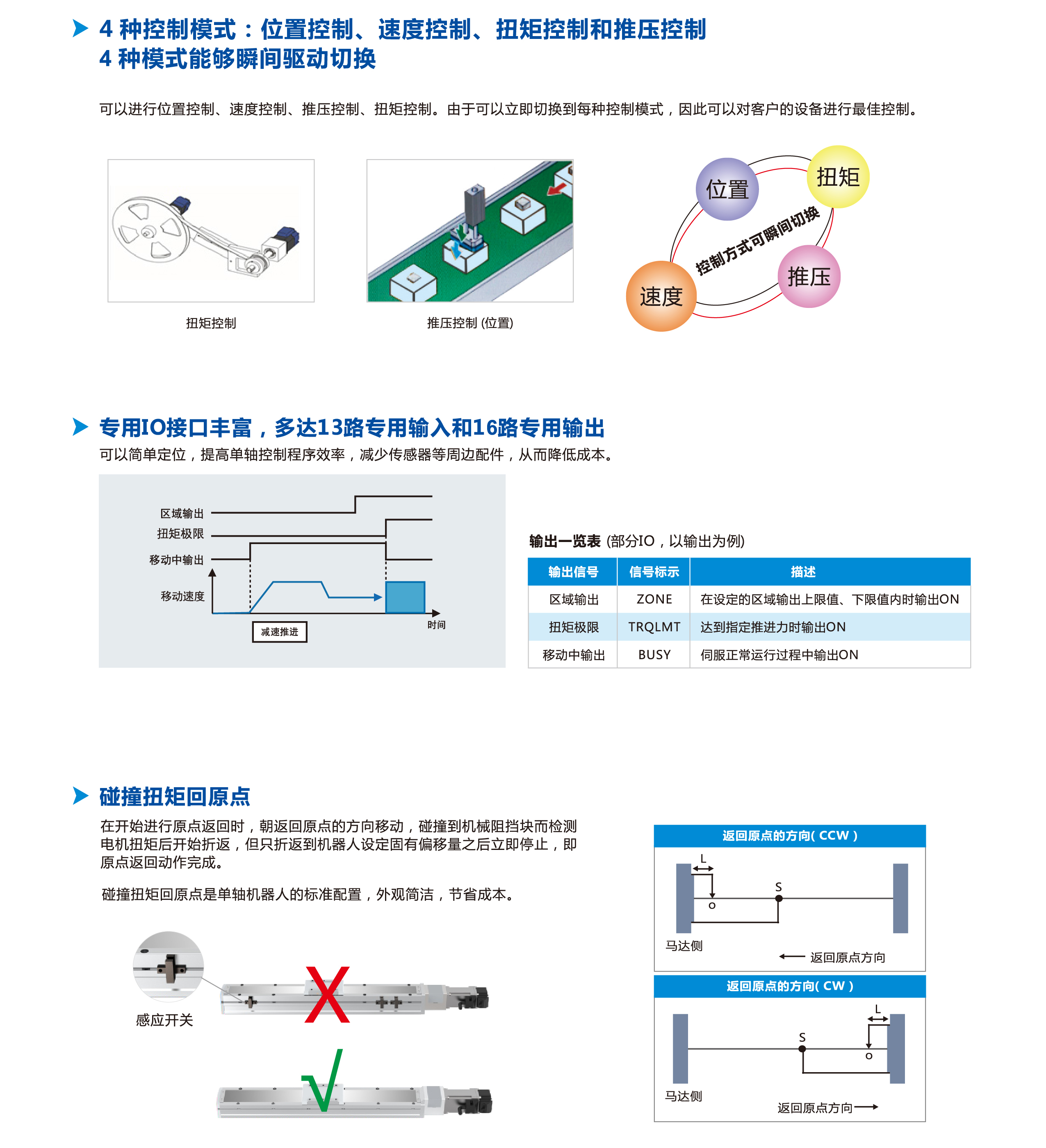 Cstep系列閉環(huán)步進(jìn)單軸控制器是基于混合式二相閉環(huán)步進(jìn)電機(jī)的勵(lì)磁電流精準(zhǔn)控制而開發(fā)的。 1臺(tái)控制器具有位置控制、 速度控制、扭矩控制、 推壓控制4種工作模式,實(shí)現(xiàn)高響應(yīng)高扭矩、 低速高扭矩,編碼器分辨率為16000PLS/r , 達(dá)到伺服電機(jī)性能要求,性價(jià)比高,特別適合集成于單軸滑臺(tái)電缸、 電動(dòng)夾爪的位置、 力度等精準(zhǔn)控制。