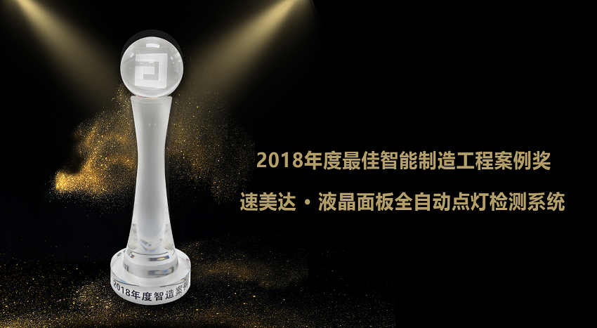 2018年12月18日,以“機器人進入中國時間”為主題的2018高工機器人金球獎頒獎典禮在深圳隆重舉行。 速美達憑借“液晶面板全自動點燈檢測系統(tǒng)”獲得組裝檢測類“年度最佳智能制造工程案例獎”。
