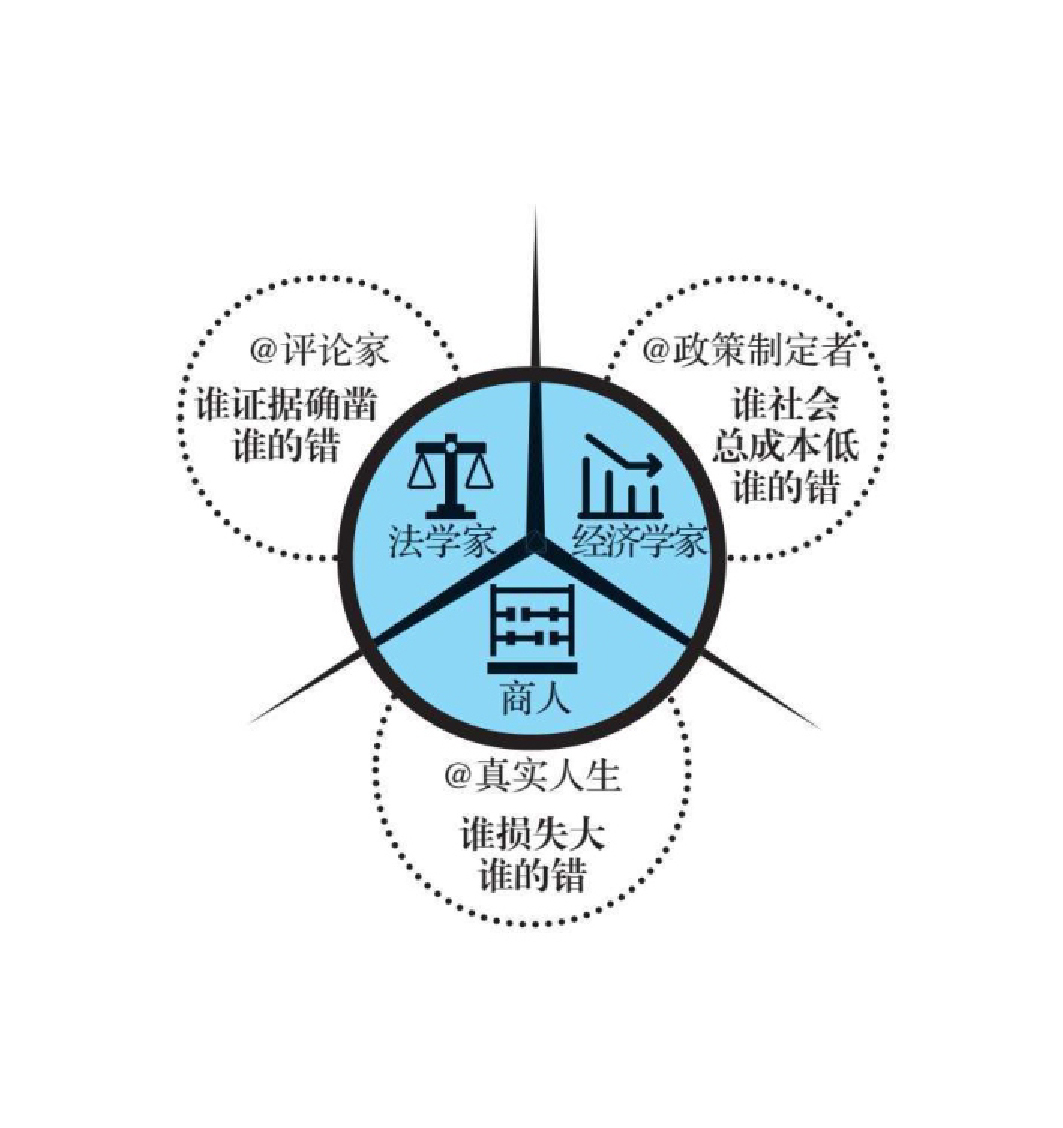 上面的例子說明, 如果你是評論家,可以選擇法學(xué)家的立場;如果你是政策制定者,可以選擇經(jīng)濟(jì)學(xué)家的立場;如果將要摔斷腿或者被撞死的是你自己,我建議你選擇商人的立場——“我的錯(cuò),都是我的錯(cuò)”,因?yàn)?/span>“我的損失最大”。