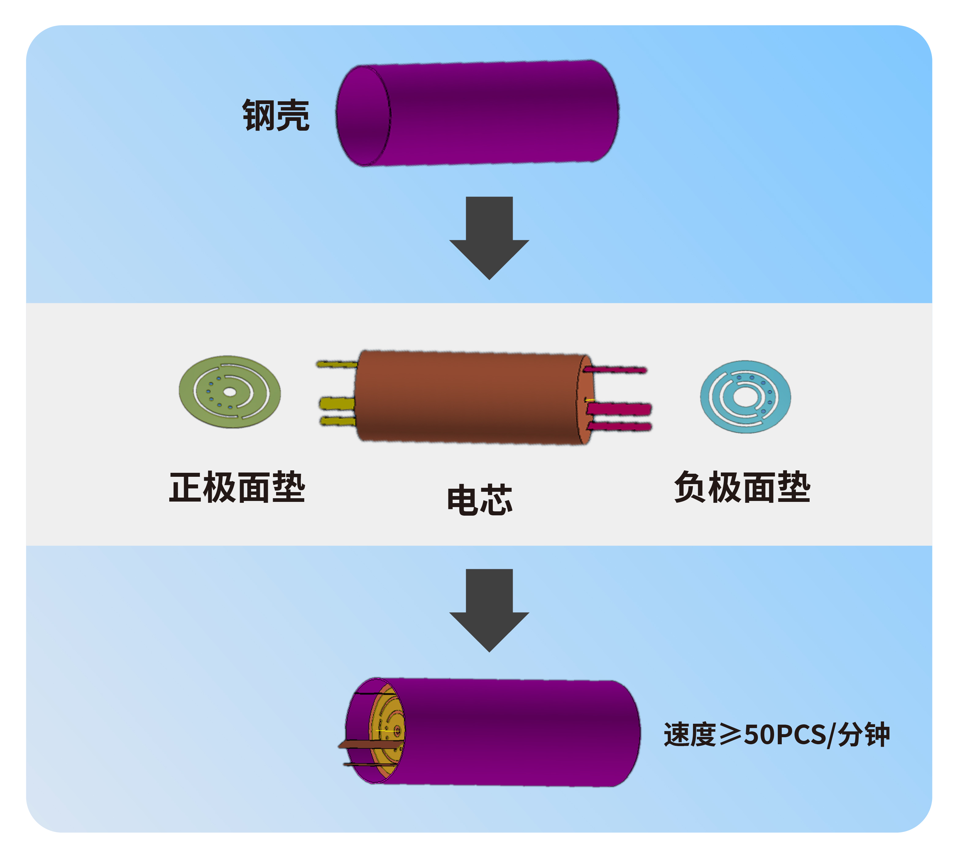 隨著動力電池生產擴大規(guī)模和提高效率,電池企業(yè)對極耳定位檢測需求增加,相應地對視覺成像的質量和速度也提出了更高的要求。速美達不斷深入了解極耳各個工序定位檢測難點,針對圓柱電池的電芯入殼段組裝,帶來極耳視覺定位與折彎AI檢測視覺系統(tǒng)。